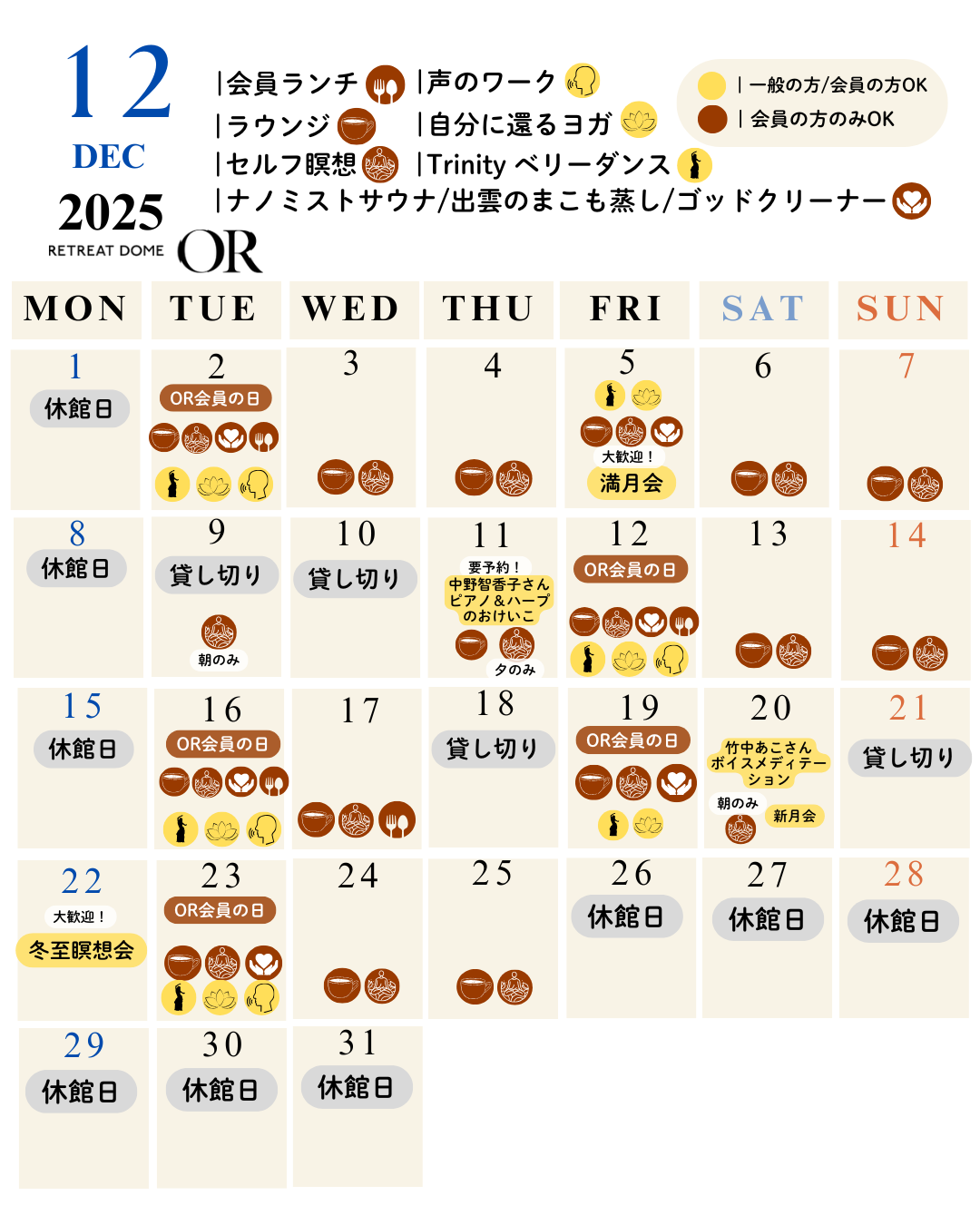 また、12月にリトリートドームで行われるイベントを ピックUPさせていただきます。