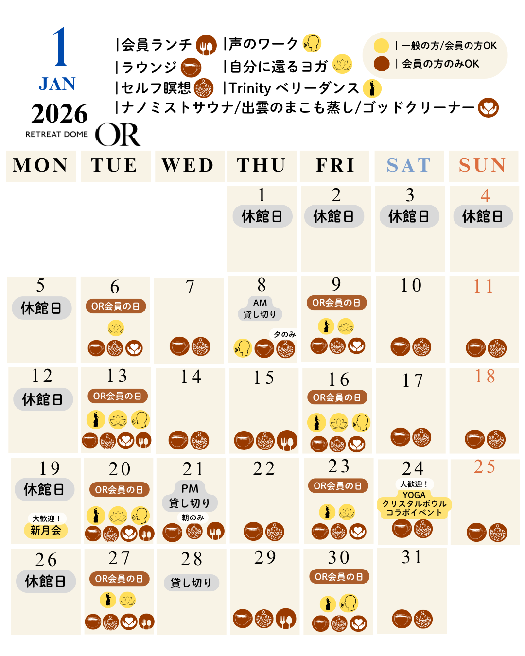 また、1月にリトリートドームで行われるイベントを ピックUPさせていただきます。